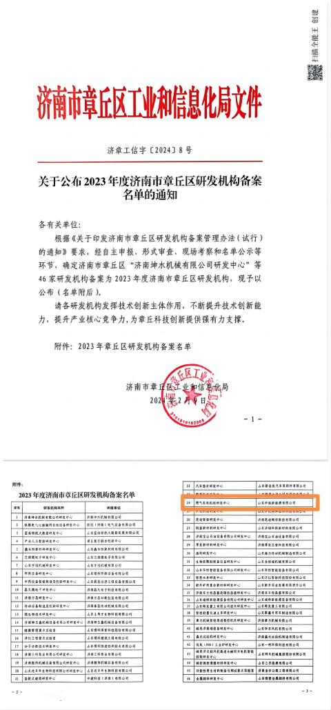 熱烈祝賀山東中拓新能源有限公司榮獲2023年度章丘區研發(fā)機構備案企業